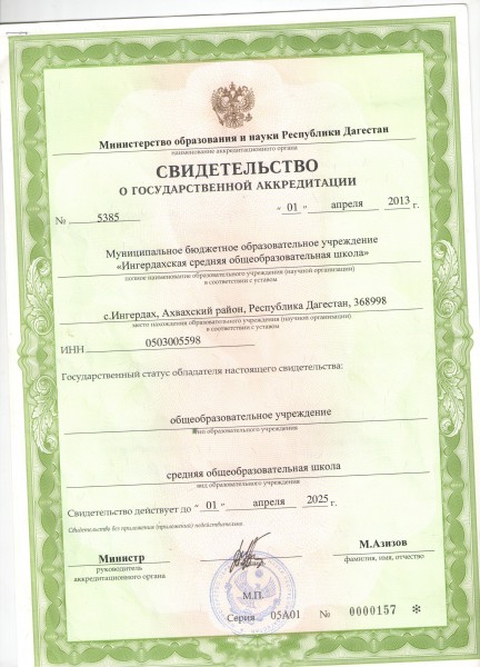 Свидетельство о государственной аккредитации